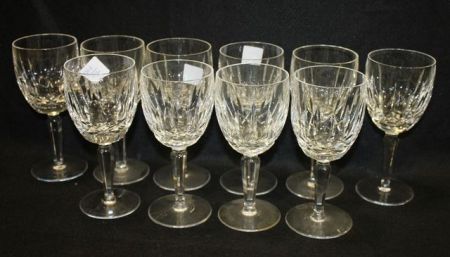 Set of ten Waterford wine glasses; 7" h. Set of ten Waterford wine glasses; 7" h.