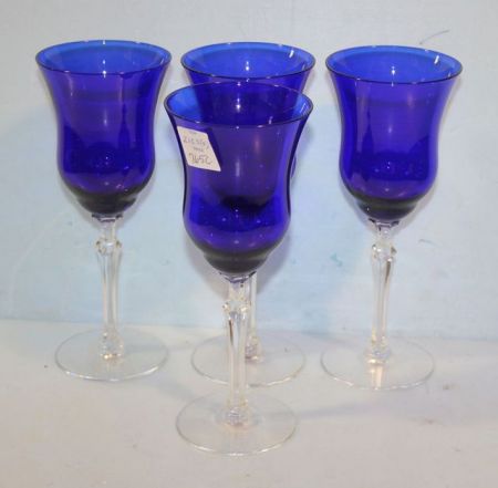Set of Four Cobalt Glasses; 8 1/4" h. Set of Four Cobalt Glasses; 8 1/4" h.
