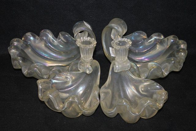 1920's Venetian Murano Glass Four Piece Epergne; four shell shaped pieces, two with candlesticks; 17 1/2" dia., 6 1/2" h. 1920's Venetian Murano Glass Four Piece Epergne; four shell shaped pieces, two with candlesticks; 17 1/2" dia., 6 1/2" h.