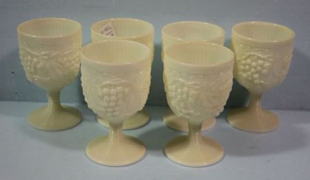 2150 Set of Six Cable and Grape Milk Glass Goblets