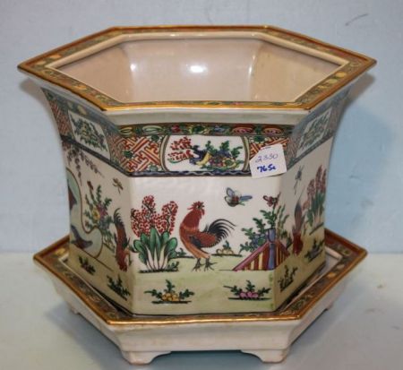 Jardinere, cracked base; 9 1/2" dia. Jardinere, cracked base; 9 1/2" dia.