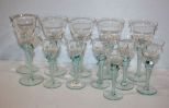 2356 Set of Twelve Clear and Aquamarine Color Stem Glasses