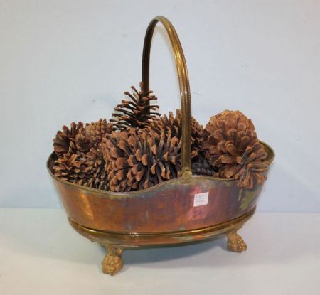 Brass Pawfoot Oval Basket; 16 1/2" w., 17" h. Brass Pawfoot Oval Basket; 16 1/2" w., 17" h.