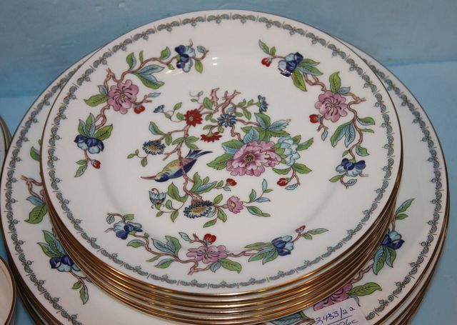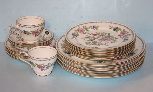 English Bone China Set "Pembroke" Pattern, consisting of; six dinner plates, six salad plates, six bread plates, two cups, two saucers; 22 pieces total English Bone China Set "Pembroke" Pattern, consisting of; six dinner plates, six salad plates, six bread plates, two cups, two saucers; 22 pieces total