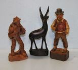 Group of Three Carved Figures, one deer, two men; approximately 8" h. Group of Three Carved Figures, one deer, two men; approximately 8" h.