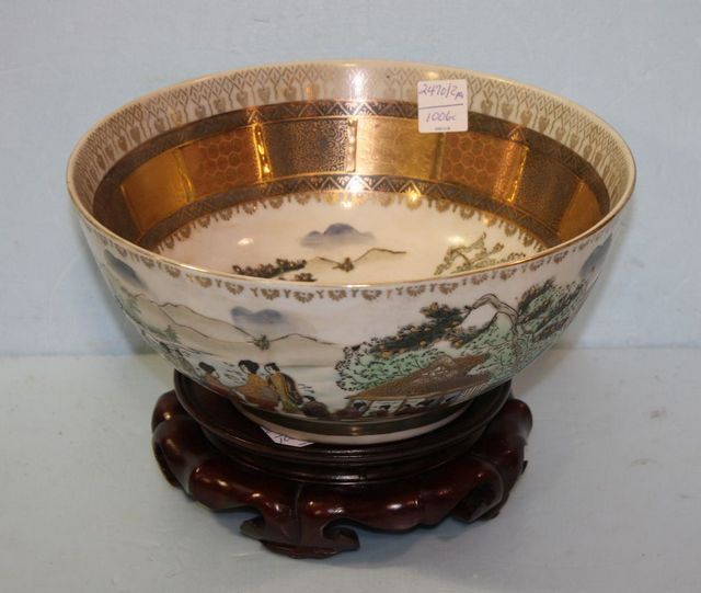 2470 Decorative Wildwood Accents Oriental Bowl on Wood Stand