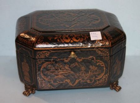 2508 Black Lacquer Tea Box with Gold Decoration in Oriental Motif