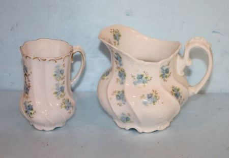 Hand Painted Cup and Creamer; 3" h. Hand Painted Cup and Creamer; 3" h.