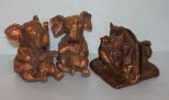 2556 Pair of Sterling Industries Resin Elephant Bookends and a Pair of Metal Dog and Quail Bookends
