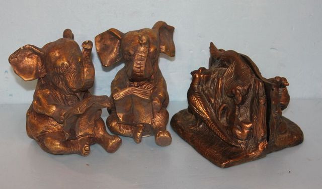 Pair of Sterling Industries Resin Elephant Bookends (6" h.) and a Pair of Metal Dog and Quail Bookends (4" h.) Pair of Sterling Industries Resin Elephant Bookends (6" h.) and a Pair of Metal Dog and Quail Bookends (4" h.)
