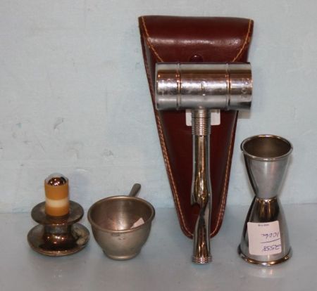Group of Cups, including; pewter cup, rumpp 20 oz. jigger cup, jigger cup, Towle Silverplate decanter stopper Group of Cups, including; pewter cup, rumpp 20 oz. jigger cup, jigger cup, Towle Silverplate decanter stopper