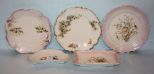 Five Hand Painted Porcelain Pieces; three 7 1/2" plates, rectangular dish 7", bone dish 6 1/2" Five Hand Painted Porcelain Pieces; three 7 1/2" plates, rectangular dish 7", bone dish 6 1/2"