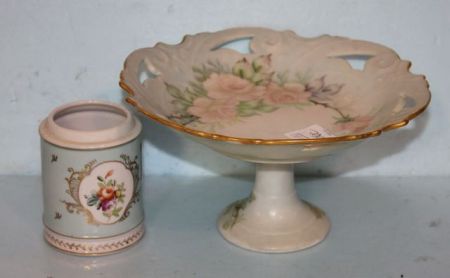 2571 Reproduction Hand Painted Compote and a Parisinne Porcelain Jar