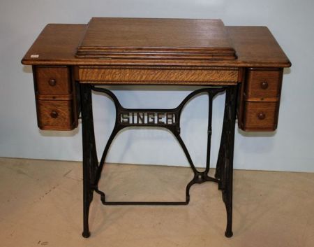 20th Century Oak Singer Sewing Machine Case and Iron Base, no machine; 36" w., 18" d., 29" h. 20th Century Oak Singer Sewing Machine Case and Iron Base, no machine; 36" w., 18" d., 29" h.