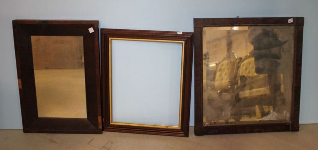 Two Antique Empire Style Mirrors and Frame; frame 21 1/2" w., 25" h., mirror 18 1/2" w., 26 1/2" h., mirror 25" w., 27 1/2" h. Two Antique Empire Style Mirrors and Frame; frame 21 1/2" w., 25" h., mirror 18 1/2" w., 26 1/2" h., mirror 25" w., 27 1/2" h.