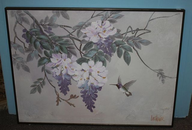 Oil Painting of Hummingbird; 40 1/2" w., 30 1/2" h. Oil Painting of Hummingbird; 40 1/2" w., 30 1/2" h.