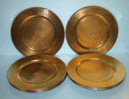 Two Hammered Plates (13" dia.) and Eight Gibson Plastic Underplates (13" dia.) Two Hammered Plates (13" dia.) and Eight Gibson Plastic Underplates (13" dia.)