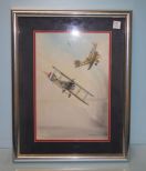 Watercolor Sketch of an Aerial Combat, signed Doe Smend Nicholas; 16" w., 21" h Watercolor Sketch of an Aerial Combat, signed Doe Smend Nicholas; 16" w., 21" h