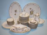 Partial China Set, Saxony, German; one dinner plate (chipped, faded), eleven demitasse saucers, one cup, four butter pats, eleven saucers (three chipped), twelve bread plates, eight cereal bowls, one 12" round c Partial China Set, Saxony, German; one dinner plate (chipped, faded), eleven demitasse saucers, one cup, four butter pats, eleven saucers (three chipped), twelve bread plates, eight cereal bowls, one 12" round c