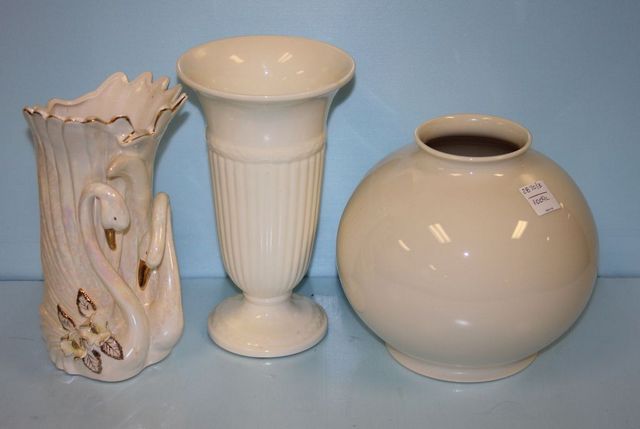 Wedgewood Vase (9" h.), Norcrest Vase (9" h.) and a Porcelain Bulbous Vase (8" dia.) Wedgewood Vase (9" h.), Norcrest Vase (9" h.) and a Porcelain Bulbous Vase (8" dia.)
