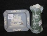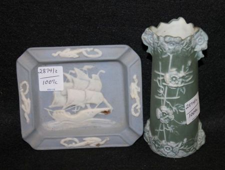Two Pieces of Decorative Bisque, Wedgewood Style Vase (5 1/2" h.) and an Ashtray Two Pieces of Decorative Bisque, Wedgewood Style Vase (5 1/2" h.) and an Ashtray