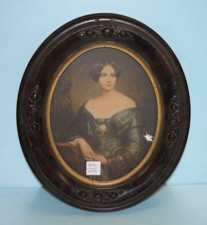 Early 20th Century Oval Frame with Print; 11 1/2" w., 13 1/2" h. Early 20th Century Oval Frame with Print; 11 1/2" w., 13 1/2" h.