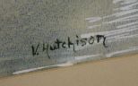 Watercolor of House on Pond, signed V. Hutchinson; 27" w., 22 1/2" h. Watercolor of House on Pond, signed V. Hutchinson; 27" w., 22 1/2" h.