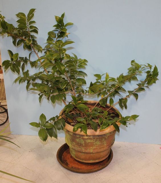 Terra Cotta Pot with Underplate, and plant; 14" h., 17" dia. Terra Cotta Pot with Underplate, and plant; 14" h., 17" dia.
