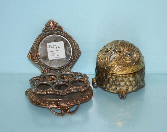 2957 Brass Vintage Lipstick Holder and a Brass Music Box Owl