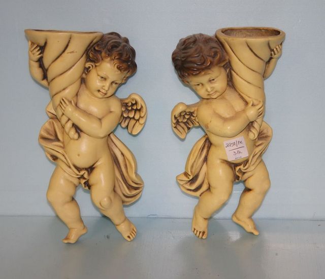 Pair of Vintage Caffco Cupid with Cornucopia Wall Sconces; 10" h., 5 1/2" w. Pair of Vintage Caffco Cupid with Cornucopia Wall Sconces; 10" h., 5 1/2" w.
