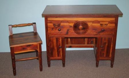2996 Vintage Brown Marble Top Desk along with a Vintage Cedar Stool