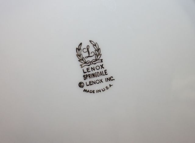Set of Lenox "Springdale" China, which includes; twelve dinner plates, ten salad plates, two soup bowls, eight bread plates, eleven cups, eleven saucers; total 54 pieces Set of Lenox "Springdale" China, which includes; twelve dinner plates, ten salad plates, two soup bowls, eight bread plates, eleven cups, eleven saucers; total 54 pieces