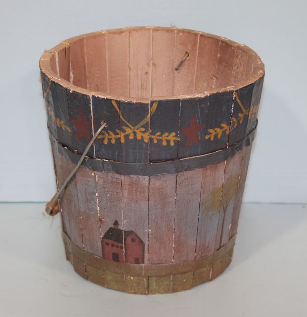 Hand Painted Wood Bucket; 8" h., 8" dia. Hand Painted Wood Bucket; 8" h., 8" dia.