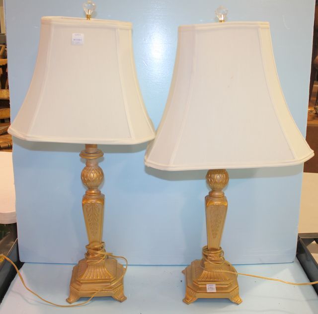 Pair of Painted Metal Candlestick Lamps; 31 1/2" h. Pair of Painted Metal Candlestick Lamps; 31 1/2" h.