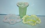 Two Victorian Glass Ruffle Edge Dishes along with a Victorian Glass Vase; 4 7/8' h. Two Victorian Glass Ruffle Edge Dishes along with a Victorian Glass Vase; 4 7/8' h.