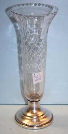 Sterling Weighted Glass Bud Vase, with inscription I.I. Neilson, M.D.; 10 1/2" h. Sterling Weighted Glass Bud Vase, with inscription I.I. Neilson, M.D.; 10 1/2" h.