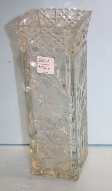 3264 Early 20th Century Pressed and Cut Glass Square Vase