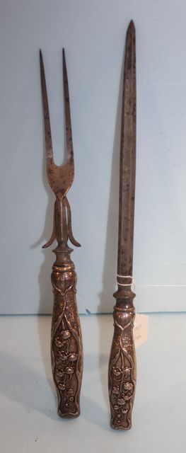 3270 Silverplate Art Nouveaux Style 20th Century Carving Set