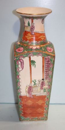 Hand Painted Oriental Vase; 18 7/8" h. Hand Painted Oriental Vase; 18 7/8" h.