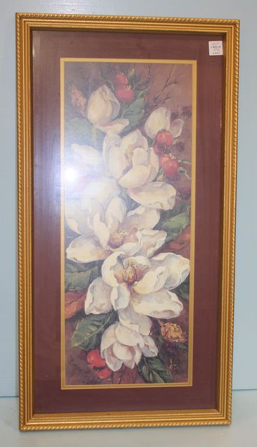 Print of Magnolias, signed; 16" w., 30" h. Print of Magnolias, signed; 16" w., 30" h.