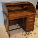 Oak Roll Top Desk; 42"w., 32"d., 42"h. Oak Roll Top Desk; 42"w., 32"d., 42"h.