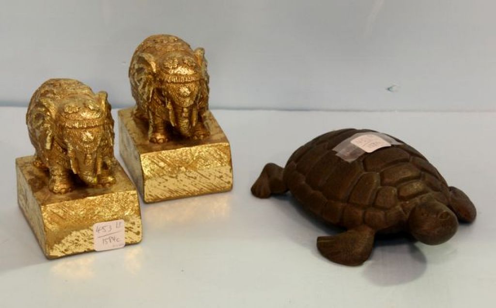 453 Two Gold Elephant Figurines & Cast Iron Turtle