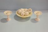 652 Marble Candle Holders, Apples & Pedestal Bowl