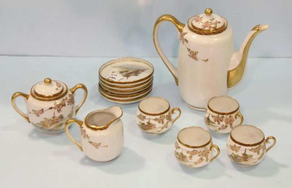 Pitcher, sugar, creamer, four cups & five saucers Pitcher, sugar, creamer, four cups & five saucers