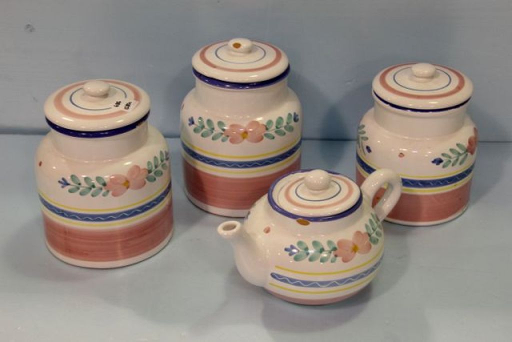 686 Hand Painted Covered Jars & Coffee Pot