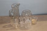 Water pitcher, bowl, flutes, bell & candy jar Water pitcher, bowl, flutes, bell & candy jar