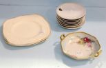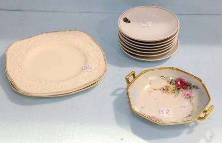 1926 Indian head set of eight Western Airline butter plates, two Wedgwood Etruria salad plates & hand painted dish (chips) 1926 Indian head set of eight Western Airline butter plates, two Wedgwood Etruria salad plates & hand painted dish (chips)