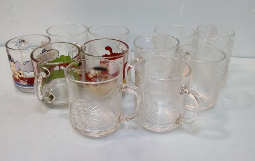 886 Eight Glass Mugs & Three Cartoon Mugs
