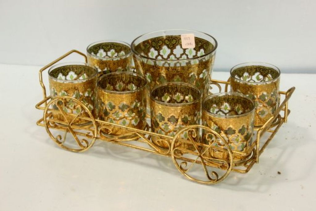 923 Ornate Gold Painted Ice Bucket and Water Glass Set