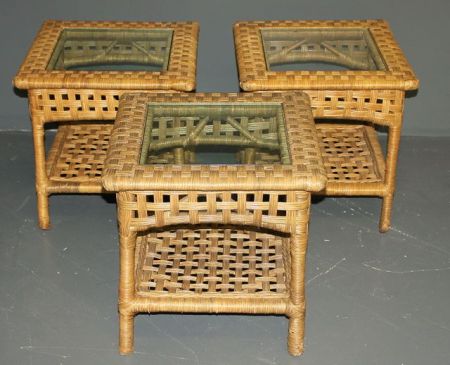 113 Three Wicker End Tables with Glass Inserts Description